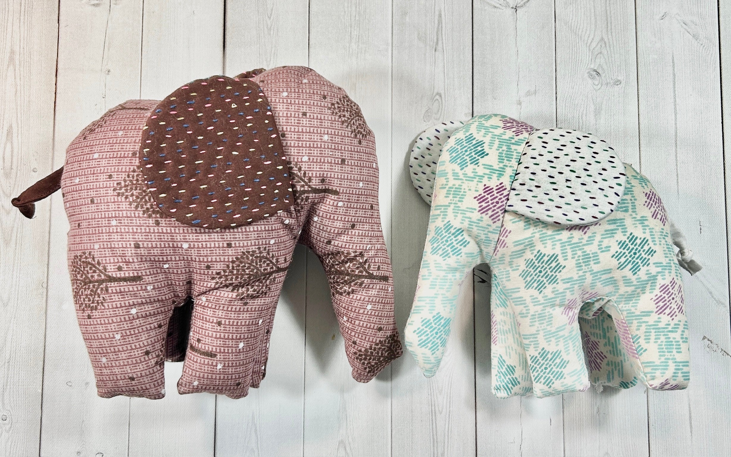 These one of a kind elephants are made from cotton sari fabric and are hand stitched  by survivors at Basha. Each one is unique.